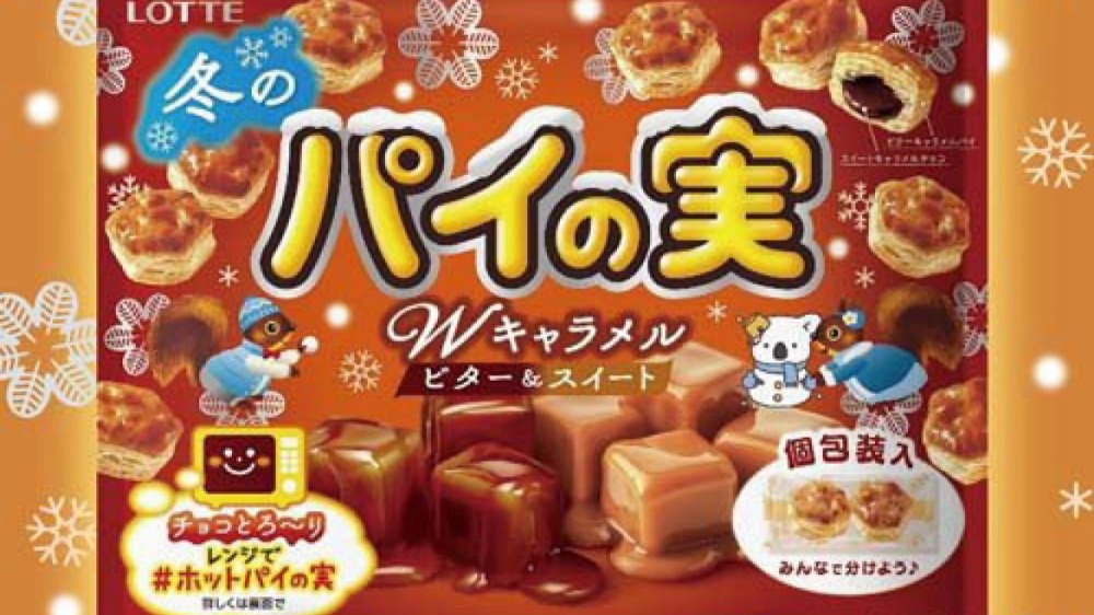 1口でビター&スイートな2つのキャラメルの味わいが楽しめる、冬のパイの実<Wキャラメル>が発売!