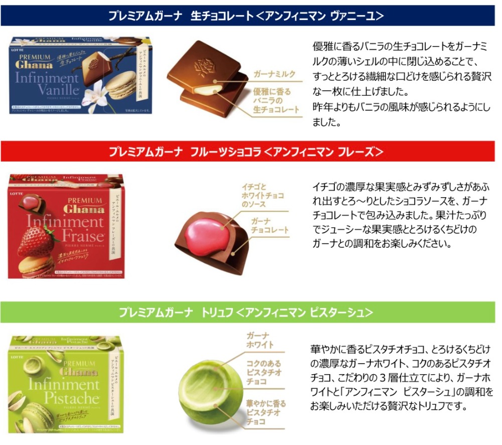 昨年「幻の青いガーナ」として特に話題になった「生チョコレート<アンフィニマン ヴァニーユ>」は、バニラ風味をより感じられるように品質を進化させて発売します。