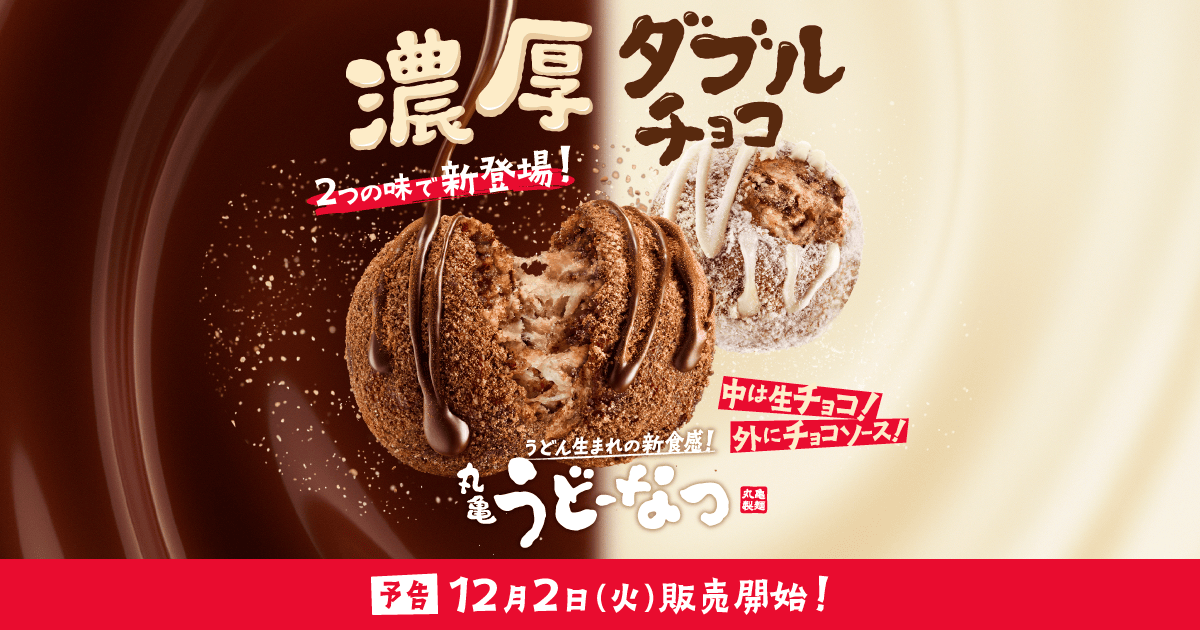 うどん生まれの新食感!「丸亀うどーなつ」12月2日から冬の新作「ごほうびチョコ味」「しあわせミルク味」が登場!お店でひとつ一つ丁寧に手づくり。